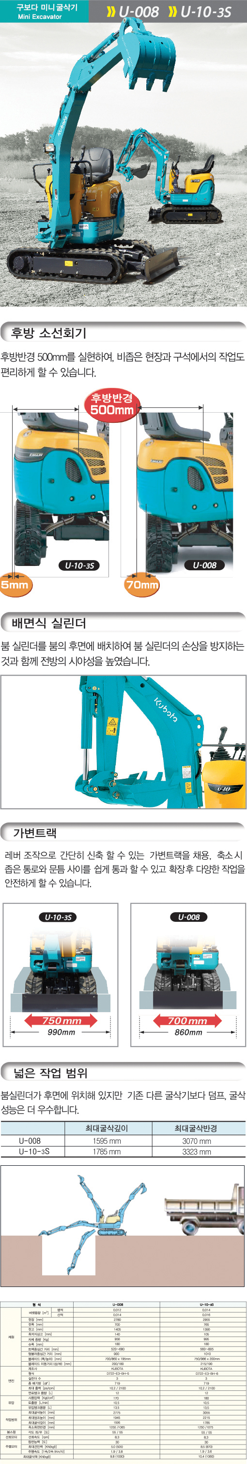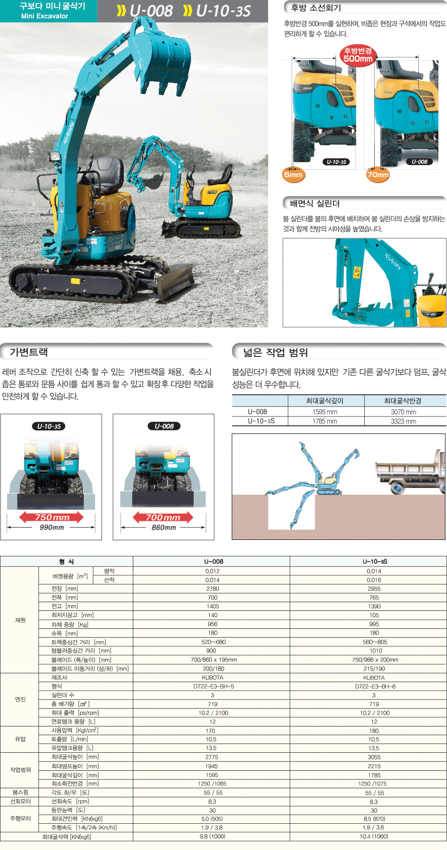 KUBOTA 구보다 미니굴삭기 농용 U-008 · U- 10-3S