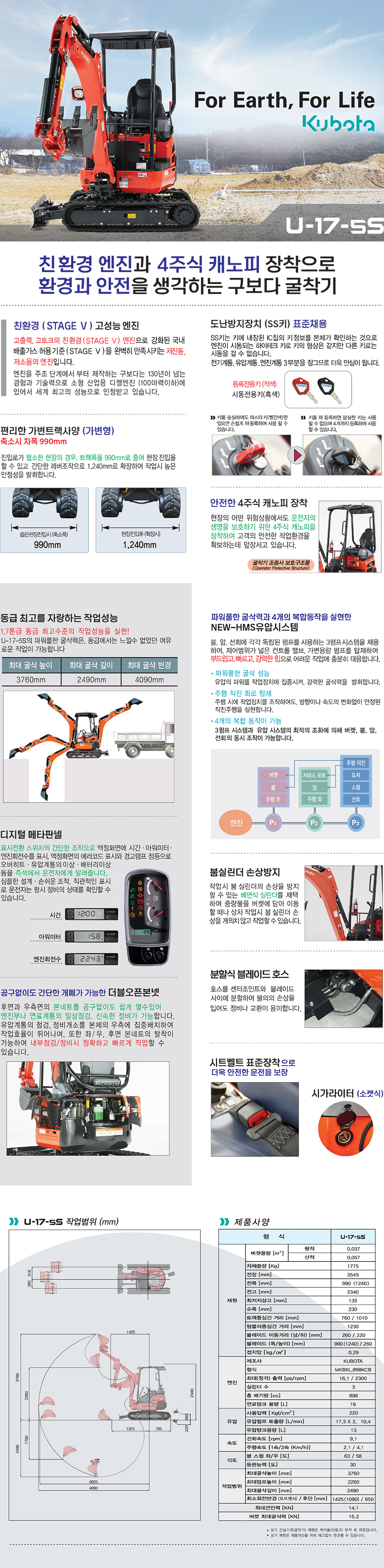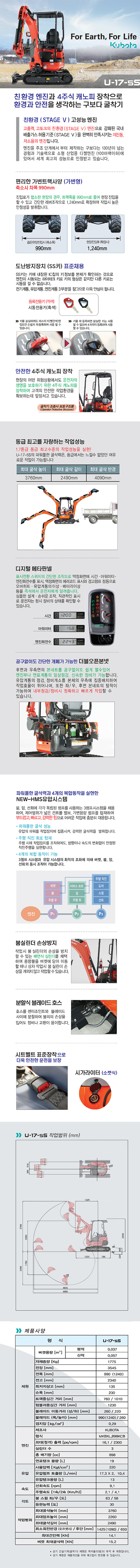 KUBOTA 구보다 미니굴삭기 1.7톤 U-17-5S